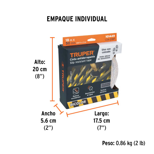 cinta antideslizante negro/fotoluminiscente con abrasivo, largo 18 m