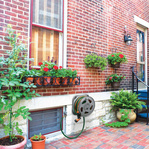 Combo de manguera reforzada 3 capas 1/2", pistola de riego plástica y porta manguera