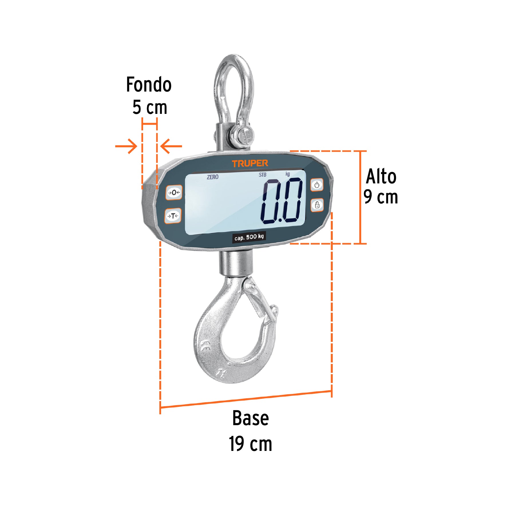 Balanza electrónica colgante, recargable, 500 kg, Truper